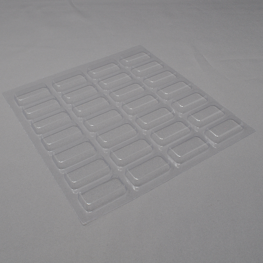 Small blisters for weekly medication management with 4 daily doses for 7 days. Made from PET plastic.